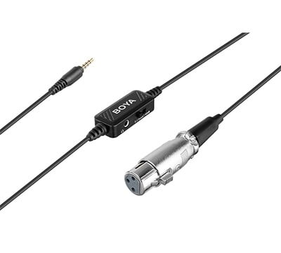 The BOYA BY-BCA6 is a Microphone Cable with integrated pre-amplifier, connecting XLR dynamic microphone , XLR battery powered condenser microphone with 3.5mm TRRS equipment.