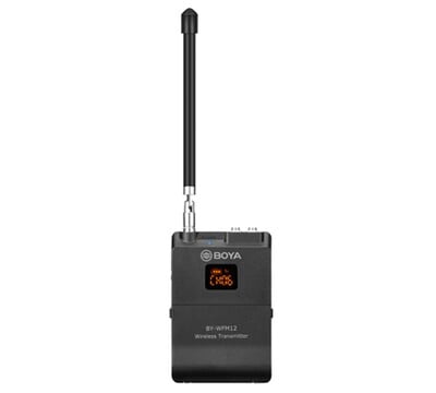The BOYA BY-WFM12 is a 12-Channel VHF Wireless Microphone System, capturing audio with smartphones, DSLRs, camcorders, audio recorders, PCs and more. This system is ideal for interviews, film making, and business presentations, or other applications that require portability. Each transmitter has two MIC socket, it allows to use two microphones at the same time. Both the receiver and transmitter are lightweight and easy to use, offering flexibility without sacrificing high-quality audio. while operating at a range of up to 40m (131 feet) away without obstacles.