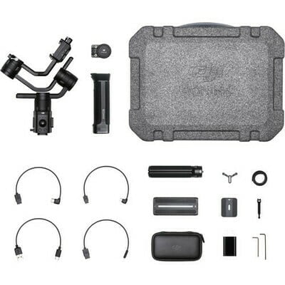 Everything you need to get started shooting with the Ronin-S comes with the gimbal. A sliding camera mounting plate for attaching your camera and balancing works with the included lens support and riser to secure your mirrorless or DSLR camera of choice. USB Type-C and Type-B cables are included for camera control functions like start/stop and focus pulling (depending on camera compatibility). A 24W USB charger is included for quick-charging the gimbal. The gimbal and all included accessories can be stored inside the included case, which helps protect your equipment during storage and transport.