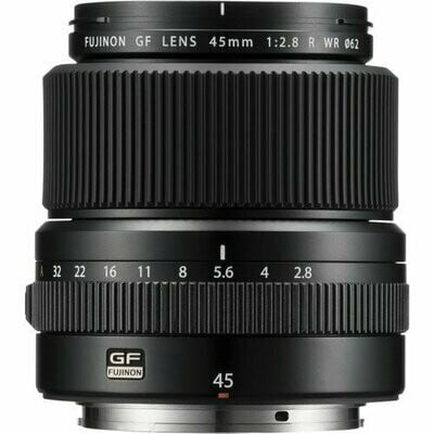 FUJINON GF45mmF2.8 R WR Lens is a highly versatile wide angle lens with a focal length equivalent to 36mm (on a 35mm format) and maximum F2.8 aperture. Thanks to its compact and lightweight design (weighing only 490g), this lens is ideal for street and documentary photography.