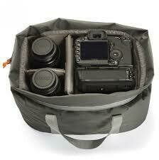 Pro DSLR with attached lens (up to 24-70 mm), 1 to 2 extra lenses (up to 70-200 mm), tripod, flash and accessories