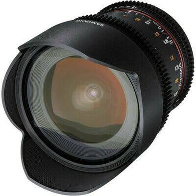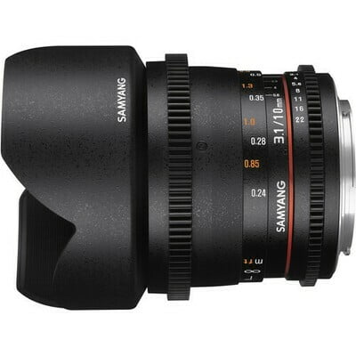 The Samyang 10mm T3.1 VDSLR ED AS NCS CS II Lens is the cine / video version of the Samyang 10mm T3.1 ED AS NCS CS Lens featuring the same excellent optics, but with integrated gearing for video rigs with follow focus systems.